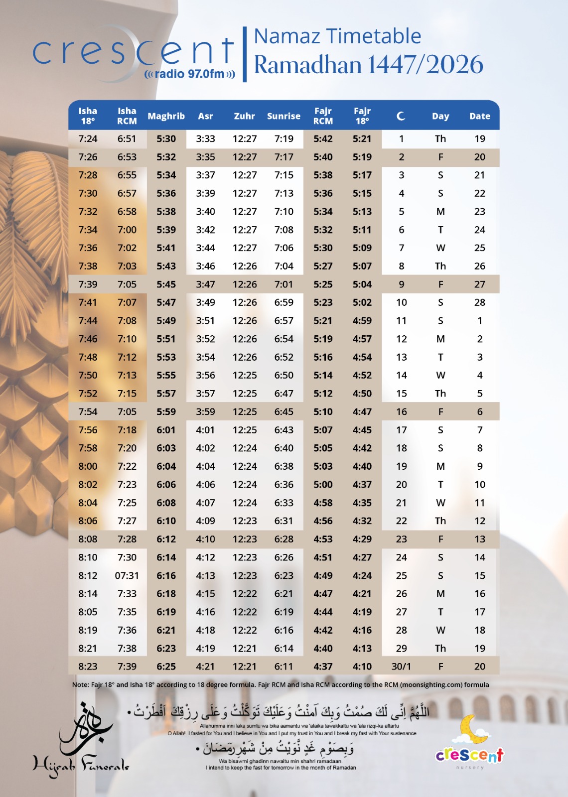 | Prayer times (RCM) 27th February 2026 11 Ramadan 1447 |